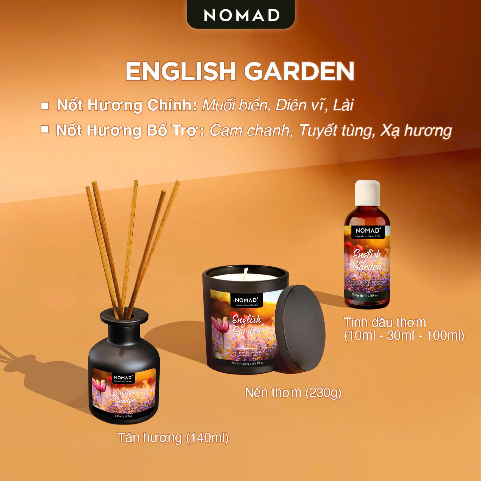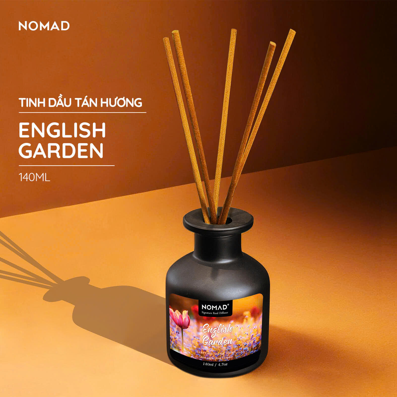Nomad Reed Diffuser - English Garden mang đến hương thơm bền bỉ suốt nhiều tuần liền, đồng hành cùng bạn trong việc tạo nên không gian sống hoàn hảo, thư giãn và đầy phong cách.