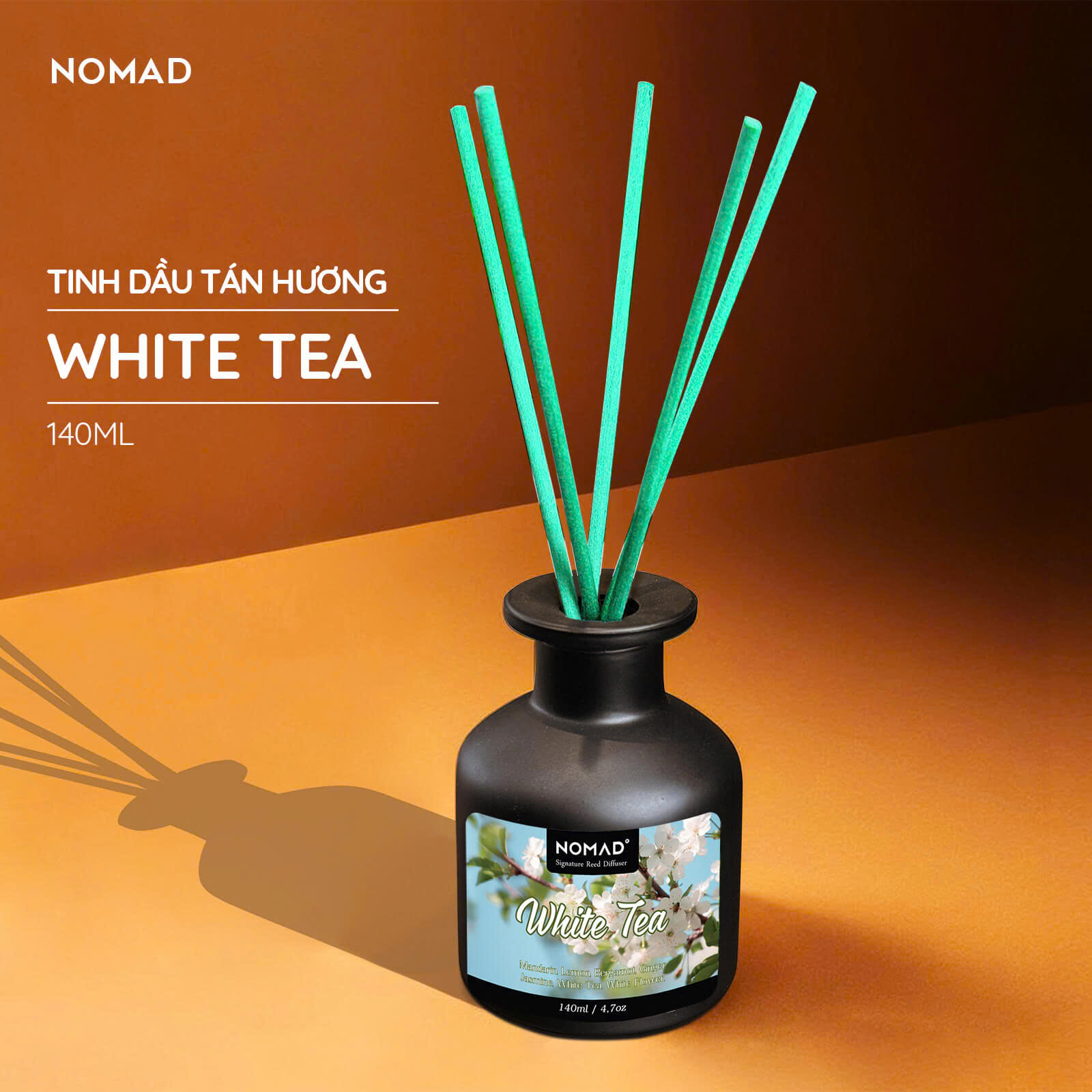 Nomad Reed Diffuser - White Tea mang đến sự thư giãn và thanh tịnh cho không gian sống, giúp bạn cảm nhận được sự bình yên và tươi mới, như thưởng thức một tách trà trắng ấm áp trong một buổi sáng yên bình.