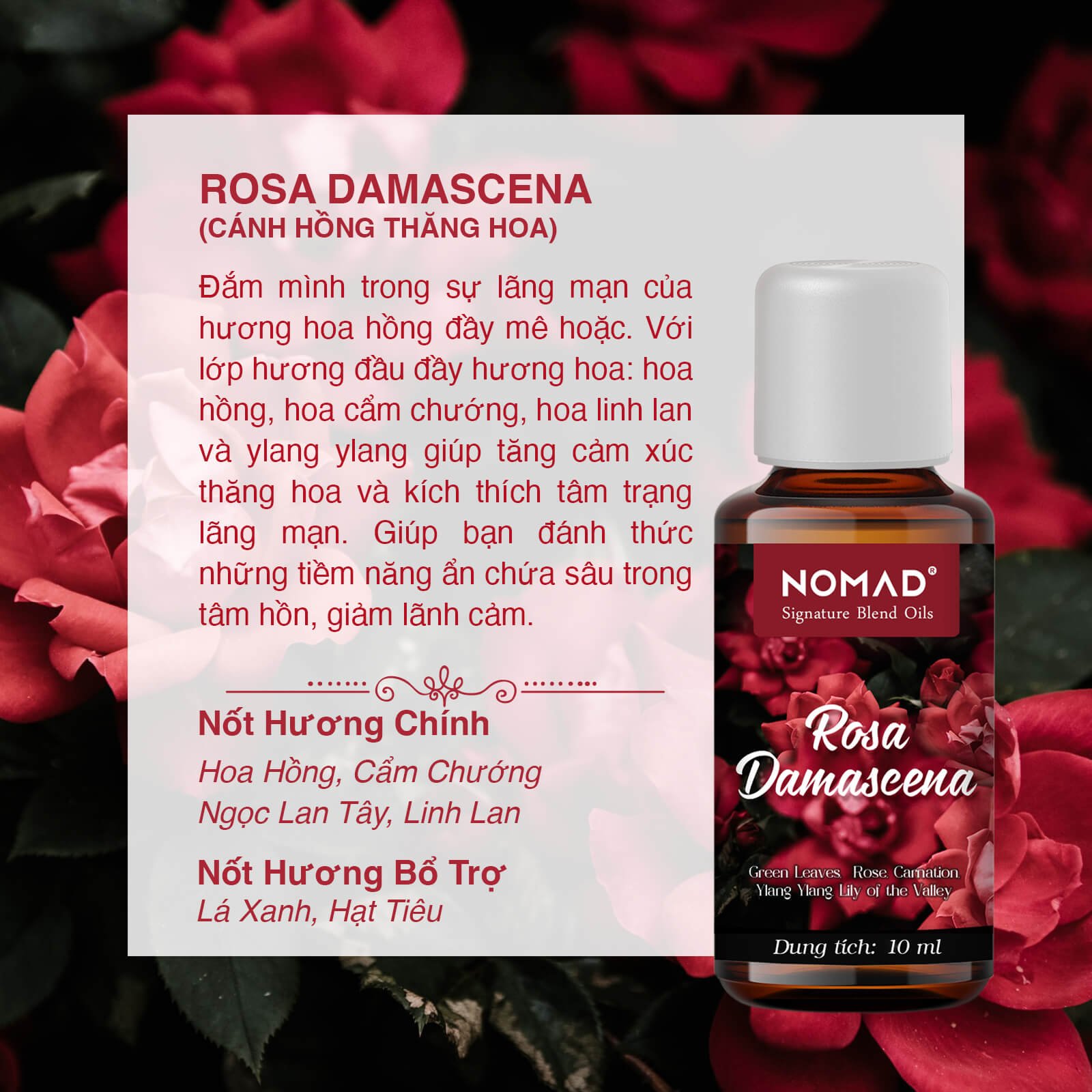 Tinh Dầu Nomad Signature Blend Oils - Rosa Damascena là sự kết hợp hoàn hảo giữa hương hoa hồng Damascena ngọt ngào và quyến rũ, mang đến một mùi hương tinh tế, lãng mạn và đầy nữ tính. Hương thơm từ hoa hồng Damascena nổi bật với sự tươi mới, thanh thoát nhưng cũng đầy sâu lắng, tạo nên không gian sống nhẹ nhàng và thư giãn. Rosa Damascena là lựa chọn lý tưởng cho những ai yêu thích sự tinh tế và muốn tận hưởng sự thư giãn, yên bình trong không gian đầy sắc màu của hoa hồng. Sản phẩm này không chỉ giúp thư giãn tinh thần mà còn làm dịu cảm xúc, mang lại cảm giác thoải mái và dễ chịu.